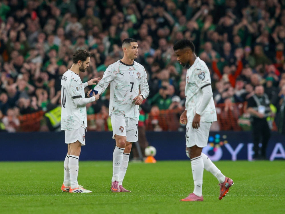 Ronaldo, der als erster Fußballer WM Nummer sechs bestreiten würde, und seine Teamkollegen vergaben ihren ersten Matchball kläglich. Troy Parrott von AZ Alkmaar (17./45.) traf schon in Halbzeit eins doppelt gegen noch in Sollstärke spielende Gäste.