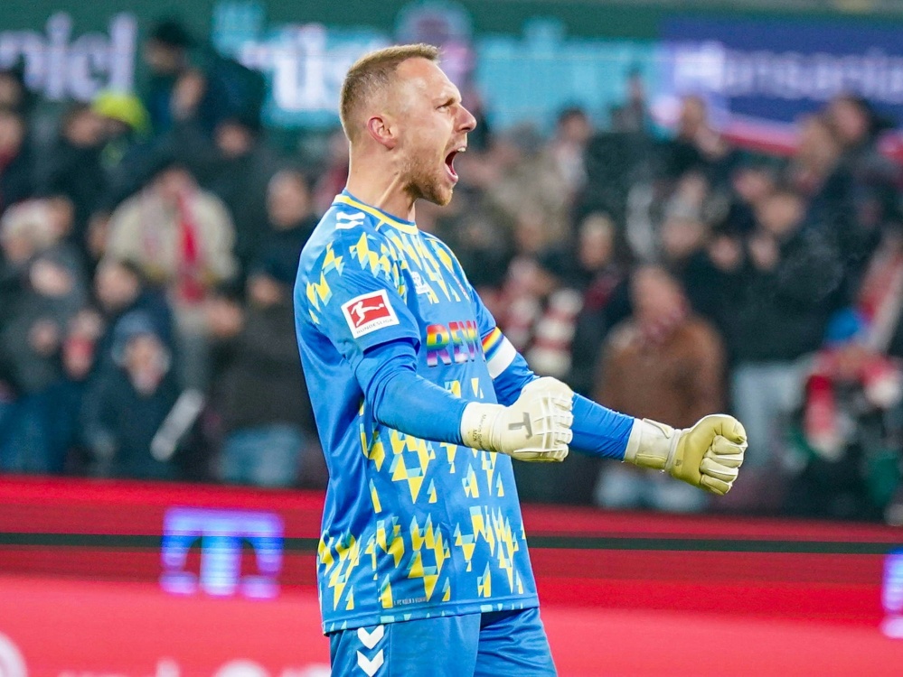 Marvin Schwäbe bejubelt den Heimsieg der Kölner (Imago/Steinsiek.ch - Joeran Steinsiek - Imago/Steinsiek.ch/SID)