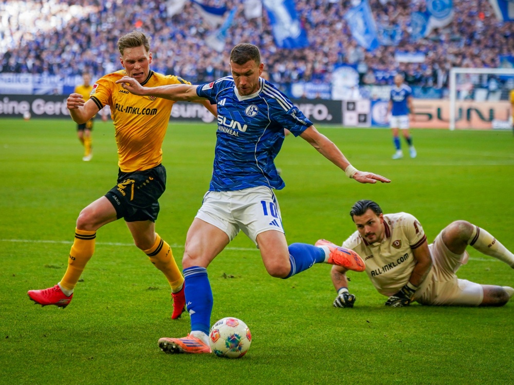Der FC Schalke 04 hat trotz eines Doppelpacks von Edin Dzeko seine Sieglosserie in der 2. Fußball-Bundesliga fortgesetzt. Das Team von Trainer Miron Muslic kam gegen Abstiegskandidat Dynamo Dresden nach Führung nur zu einem 2:2 (0:0). Die Gäste aus Sachsen holten spät einen Zwei-Tore-Rückstand auf.