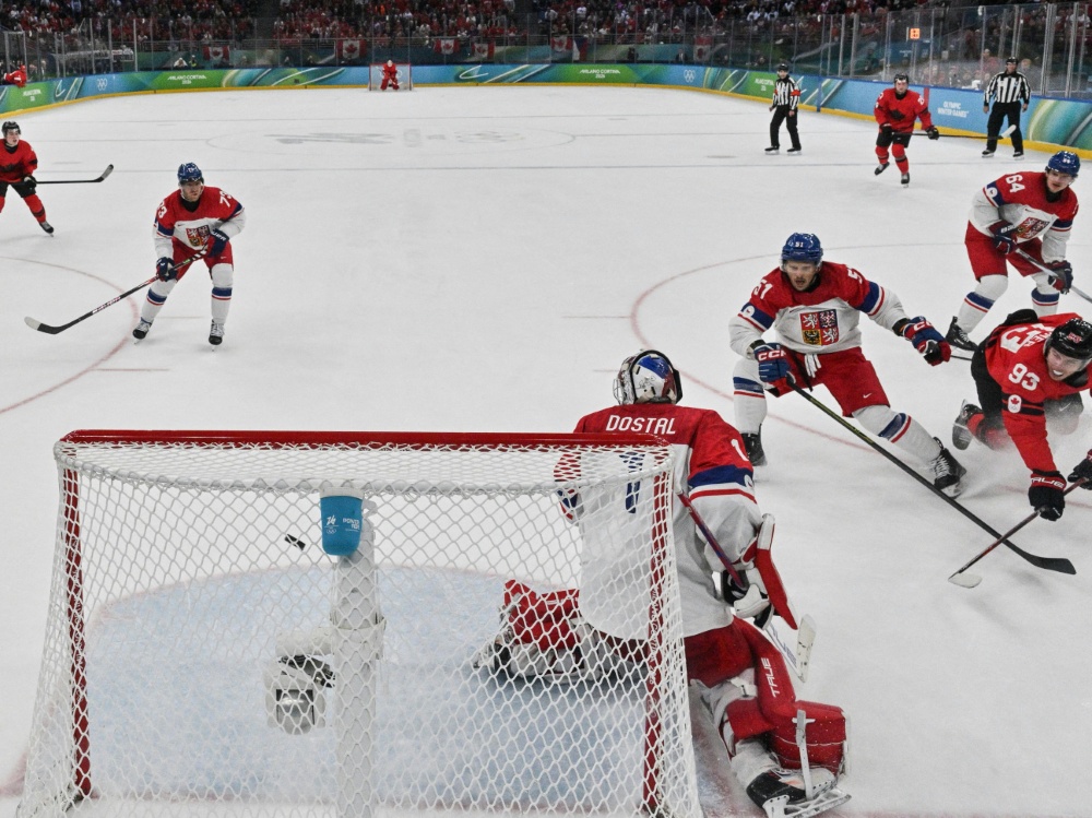 Goldfavorit Kanada hat das frühe Aus bei den Olympischen Winterspielen gerade noch abgewendet und auf dramatische Art und Weise das Halbfinale erreicht. Das Starensemble um Connor McDavid und Sidney Crosby lag in der Runde der letzten acht gegen Tschechien bis wenige Minuten vor dem Ende zurück, rettete sich in die Verlängerung und setzte sich mit 4:3 (1:2, 1:0, 1:1, 1:0) durch.