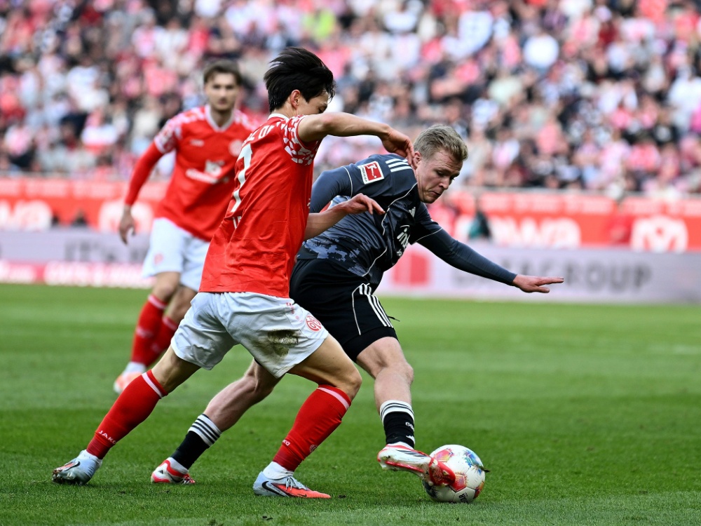 Nationalspieler Jonathan Burkardt hat bei seiner ersten Rückkehr mit Eintracht Frankfurt zum FSV Mainz 05 einen Dämpfer im Rennen um den Europapokal kassiert. Die Eintracht unterlag bei starken Mainzern mit 1:2 (1:1) und verpasste es, mit einem Sieg näher an den Tabellensechsten Bayer Leverkusen heranzurücken. Die Werkself hatte am Samstag gegen Schlusslicht 1. FC Heidenheim (3:3) überraschend Punkte liegen lassen.
