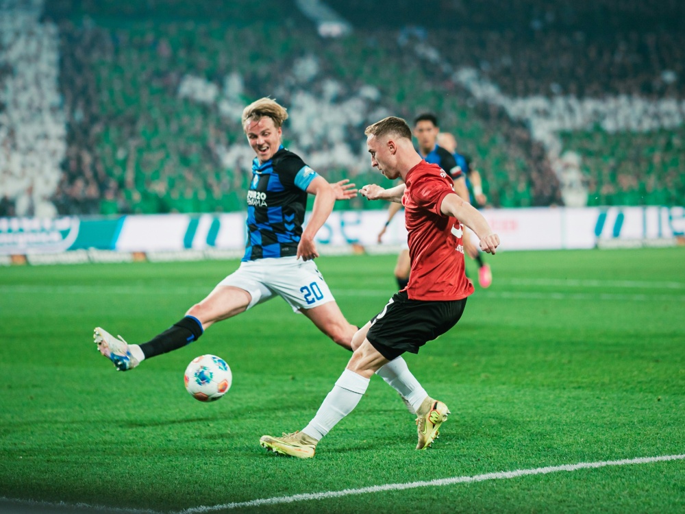 Aufgrund des 130-jährigen Vereinsjubiläums liefen die Niedersachsen in einem Sondertrikot auf, die 96-Fans sorgten mit einer sehenswerten Choreo für eine besondere Kulisse. Und auf dem Feld ergab sich für Hannover die erste Möglichkeit: In einer kuriosen Szene prallte der Ball von Waniss Taibi (18.) an den Pfosten. Götze klärte dazu gegen Daisuke Yokota (23.). Auf der Gegenseite schob er dann aber problemlos ein, nachdem Torhüter Nahuel Noll bei einer Ecke am Ball vorbeigesprungen war.