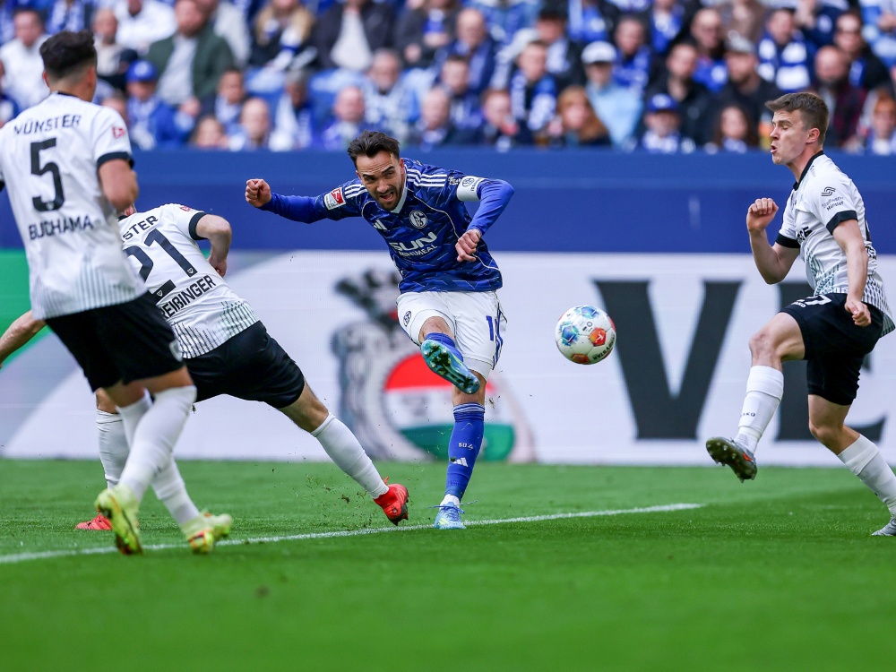 Kapitän Kenan Karaman mit seinem 13. Saisontreffer (36.), ein Eigentor von Jannis Heuer (45.), Adil Aouchiche mit seinem Debüt-Treffer (50.) und Moussa Sylla (66.) sicherten der Mannschaft von Trainer Miron Muslic den elften Heimsieg der Saison. Für Münster traf Shin Yamada (82.). Vier Runden vor Schluss wuchs nach dem zehnten Spiel in Folge ohne Niederlage der Schalker Vorsprung vor dem Relegationsplatz auf sechs Punkte. Bereits in zwei Wochen am 2. Mai gegen Fortuna Düsseldorf könnten die Gelsenkirchener den Aufstieg perfekt machen.