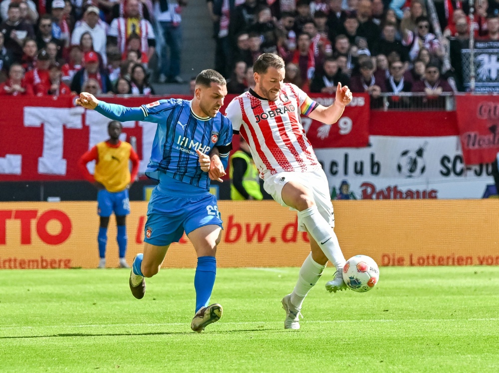 Dank der Treffer von Johan Manzambi (24.) und Maximilian Eggestein (83.) nutzte Freiburg den Patzer der Frankfurter aus, die am Samstag 1:3 gegen RB Leipzig verloren hatten und nun einen Punkt weniger gesammelt haben als die Breisgauer. Die Heidenheimer, deren Rückstand auf Relegationsplatz 16 bei noch vier ausstehenden Spielen sieben Punkte beträgt, verloren erstmals nach drei Partien in Folge ohne Niederlage wieder, der zwischenzeitliche Ausgleich durch Budu Siwsiwadse (59.) war zu wenig.
