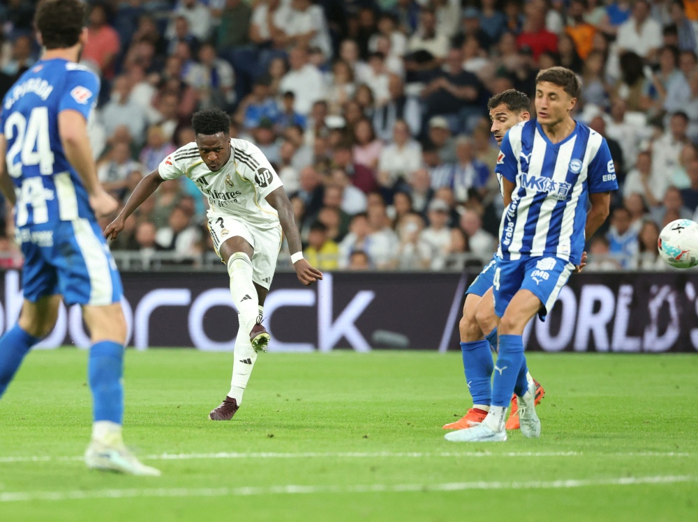 Bei noch sechs verbleibenden Ligaspielen hat das Team von Trainer Álvaro Arbeloa sechs Punkte Rückstand auf den FC Barcelona. Kylian Mbappé (30.) und Vinicius Júnior (50.) trafen, Toni Martinez traf spät für die Gäste (90.+3). Barelona kann den Erzrivalen am Mittwoch (21.30 Uhr/DAZN) mit einem Sieg gegen Celta Vigo aber wieder distanzieren.