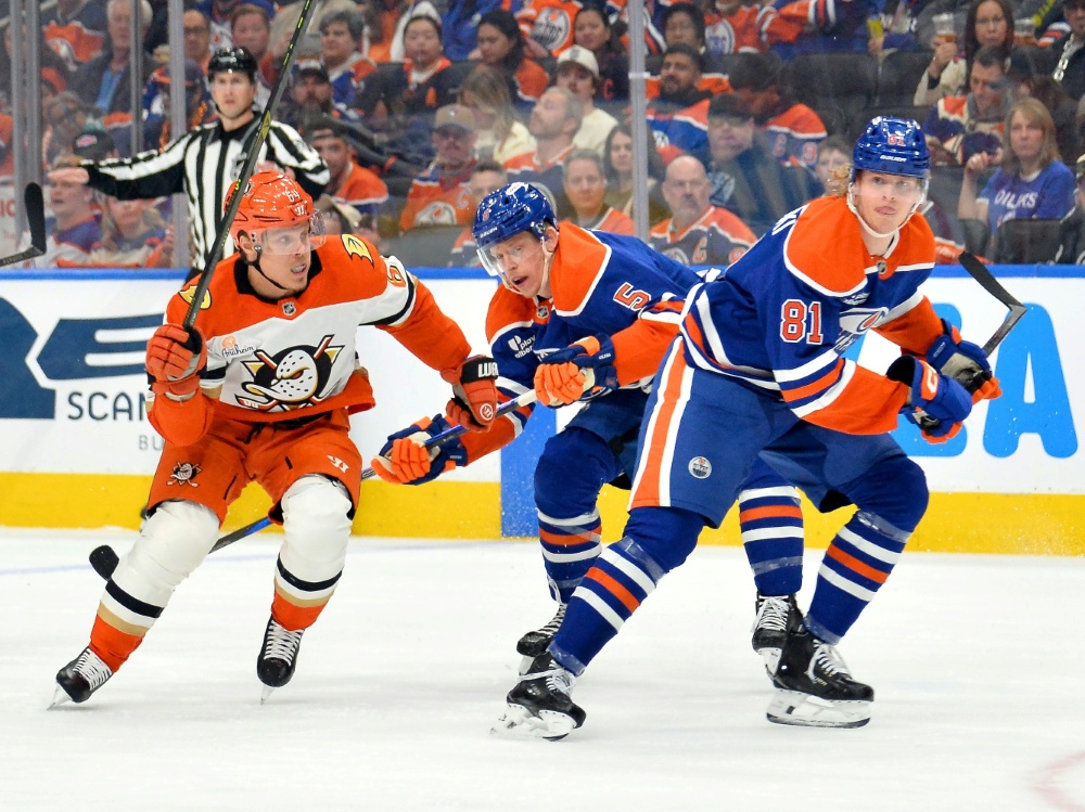 Treffer von Leon Draisaitl und Josh Samanski - aber ein Rückschlag für die Edmonton Oilers: Die deutschen Eishockey-Nationalspieler haben in der ersten Runde der NHL-Playoffs den Ausgleich zum 1:1 nicht verhindern können. Gegen die Anaheim Ducks kassierten Draisaitl und Co. eine 4:6-Niederlage, die auch der vielbejubelte Ausgleich des gebürtigen Erdingers Samanski zum zwischenzeitlichen 4:4 nicht verhindern konnte.