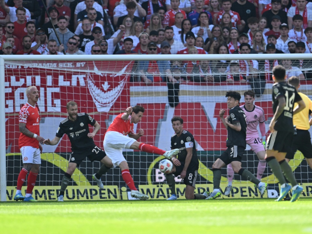 Dominik Kohr (15.), Paul Nebel (29.) und Sheraldo Becker (45.+2) stellten die Zeichen eigentlich auf erste Auswärtsniederlage seit 497 Tagen. Gegner damals waren ebenfalls die Rheinhessen, die zuvor vier ihrer vergangenen fünf Heimspiele gegen den deutschen Rekordmeister gewonnen hatten. Doch Nicolas Jackson (53.), Michael Olise (73.), Jamal Musiala (81.) und Harry Kane (83.) schlugen zurück. Olise, Musiala und Kane kamen erst nach der Pause ins Spiel. Dank der zweiten Halbzeit können die Bayern doch noch mit breiter Brust ins Halbfinal-Hinspiel in Paris am Dienstag (21.00 Uhr/Prime Video) gehen.
